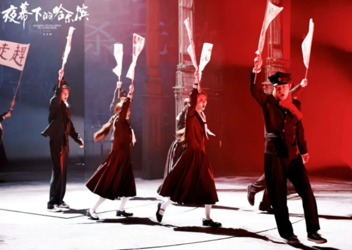 由中共黑龙江省委宣传部、黑龙江省文化和旅游厅、黑龙江省国家安全厅、中共哈尔滨市委宣传部、哈尔滨市文化广电和旅游局、保利文化集团股份有限公司作为指导单位,哈尔滨演艺影视集团有限公司、北京保利剧院管理有限公司、北京保利演出有限公司出品,哈尔滨保利剧院管理有限公司联合出品,北京保利演出有限公司制作的音乐剧《夜幕下的哈尔滨》改编自陈玙同名小说,以抗战历史为宏大幕布,以伟大抗战精神为叙事内核,用音乐和舞蹈的艺术表现形式,生动再现了烽火岁月中,中国共产党领导人民群众团结抗日的壮丽史诗。全剧以“身份撕裂与信仰坚守”为叙事核心,在战争的阴影下,每个角色都面临着命运的抉择,地下党员王一民在讲台与战场间切换身份,师者的儒雅与战士的果决形成强烈戏剧张力;玉旨一郎深陷文化认同与政治使命的撕裂困境,成为这场人性拷问中复杂而深刻的灵魂镜像。而卢淑娟的坚定反抗、罗世诚的热血无畏、塞上萧与柳絮影的悲壮爱情让家国大义与个人命运交织出震撼人心的力量。